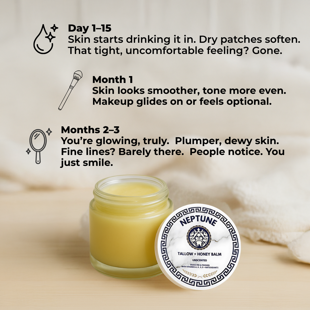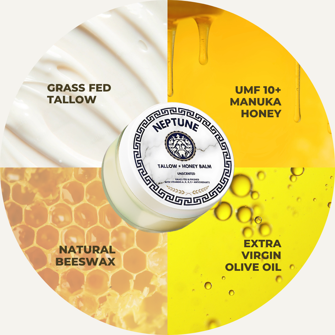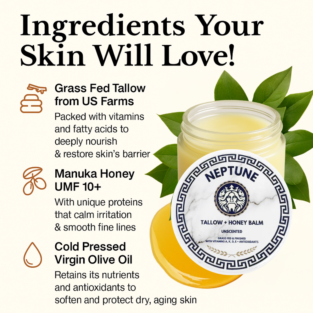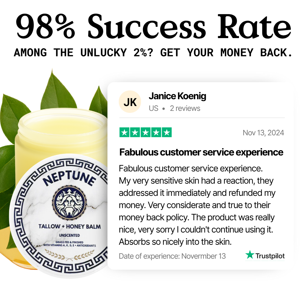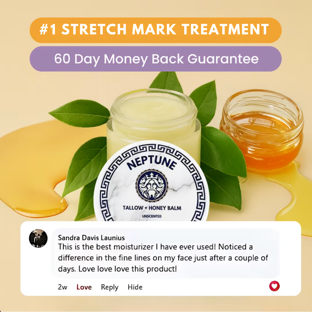 Tired of stretch marks from pregnancy, weight changes, or growth spurts stealing your confidence? Neptune's Balm uses just four clean ingredients—grass-fed tallow, UMF Manuka honey, extra virgin olive oil, and beeswax—to deeply nourish, repair, and fade marks fast. 97% of users saw smoother, less noticeable stretch marks in just 3–8 weeks.